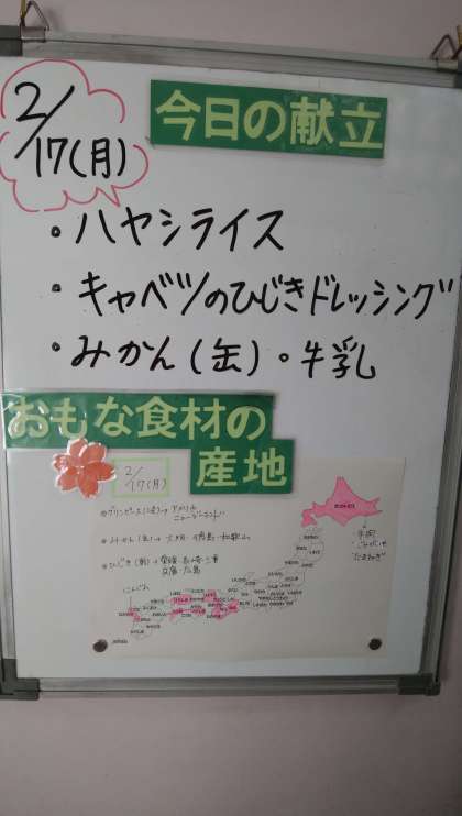 ★2月17日(月)の給食は、   ・ハヤシライス