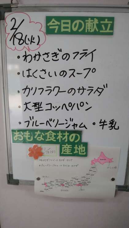 ★2月18日(火)の給食は、 ・わかさぎのフライ