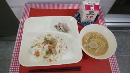 ★2月25日(火)の給食は、 ・鶏ごぼうご飯