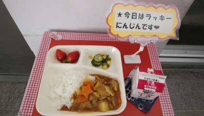 いちごは、果物の中でも特にビタミンCを多く含んでいます。ビタミンCには、病気になりにくくする働きや、きずをなおしやすくする働きがあります。今日の給食のいちごは長崎産でした。とてもあまくておいしいいちごでした。