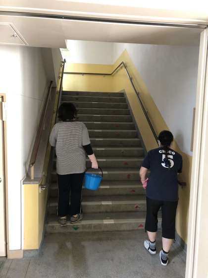 いよいよ大阪でも緊急事態宣言解除の見込みとなりましたが、いよいよ気を引き締めて衛生管理には万全を期したいと思います。先週の登校日当初より行っている児童下校後の消毒作業の様子です。