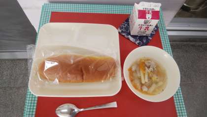 ★今日のスープには、鶏肉・玉ねぎ・にんじん・じゃがいも・コーン・パセリがはいっていました。