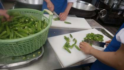 ・「オクラの梅風味」は、オクラを蒸した後、梅肉、砂糖、米酢、うすくちしょうゆをあわせて煮たタレをかけていただきました。