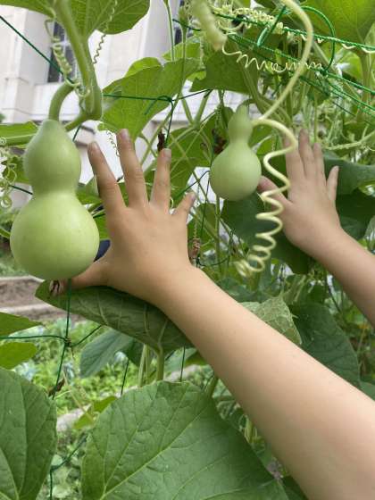 お花もきれいに咲き、ヒョウタンも子どもたちの手の大きさくらいになりました。