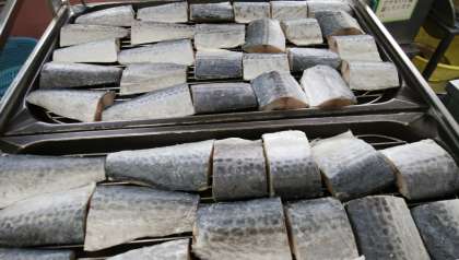 ・焼きあがったさごしに、だいこんおろし、みりん、うすくちしょうゆを合わせて煮たタレをかけていただきました。