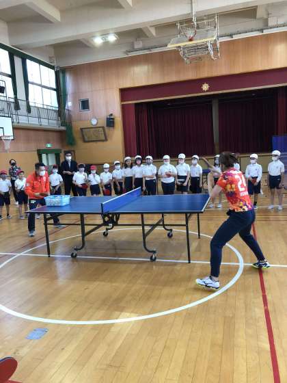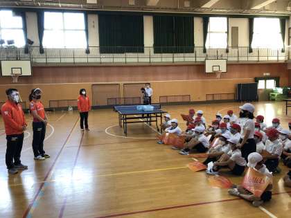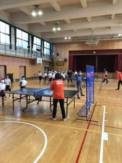 「夢・授業」日本ペイントマレッツさんによる卓球指導(4年生)