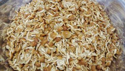 なめこは、ブナの切り株などに発生するぬめりのあるきのこの一つです。秋には天然のなめこが市場に出回ることがあります。今日の給食では、みそ汁の実として使用しています。