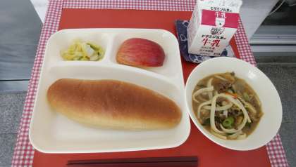 今日のりんごは、青森県産のシナノスイートでした。大きくてシャキシャキしたとてもおいしいりんごでした。