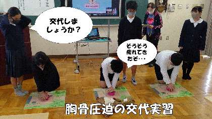 1月28日(木)「命を守ろう!心肺蘇生・AED」のテーマで、学校保健委員会を行いました。 校長先生のあいさつの後、 「心臓突然死」「胸骨圧迫と救命処置」についてのDVDの解説を視聴しました。救命処置では、保健委員会の児童がCPRトレーニングキットを使って実演しました。そのあと、学校医の泉岡先生から、不整脈や心停止の解説に続いて素早い心肺蘇生対応が命を救うためにとても大切なことを詳しくお話していただきました。今年度は、密をさけるため、保健委員会以外の5・6年の児童は各教室でTeamsによる参加をしました。