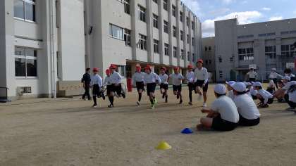 今日の2時間目に、3年1組がかけ足記録会を実施しました。