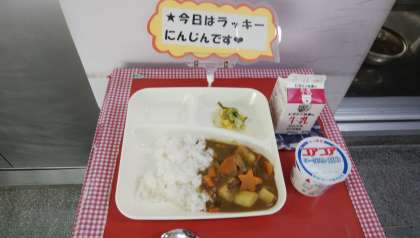 大豆は、肉や魚に負けないほどたんぱく質を多く含んでいるので「畑の肉」と呼ばれています。また、ビタミン、カルシウム、鉄なども含まれていて栄養たっぷりの食品です。今日はカレーライスに大豆が入っています。