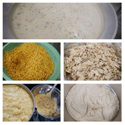 他には、鶏肉、じゃがいも、たまねぎ、にんじん、グリンピース、マッシュルーム、コーン、コーンクリーム缶などがはいっています。