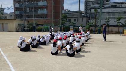 例年でしたら、全学年で実施し、都島消防署の方からお話を伺ったり、水消火器での消火訓練を行ったりするところですが、新型コロナウイルス感染症の影響で昨年度同様、学年ごとの実施となりました。