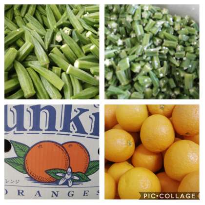 オクラは蒸した後、砂糖、塩、米酢、うすくちしょうゆをあわせタレをかけていただきました。