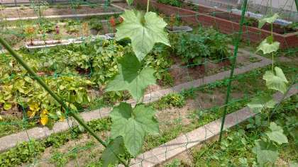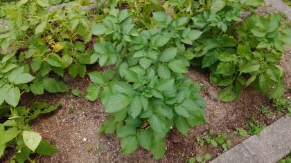 サツマイモやジャガイモ、ミニトマト、ヘチマ、ホウセンカ、ヒマワリなど、種や苗を植えて1か月ほどですが、驚くばかりの成長を見せています。
