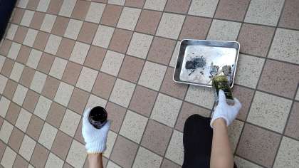 火が消えた後、中のものを比較してみるとAは燃え残りが見られ、Bはほとんど燃え尽きて灰になっていました。