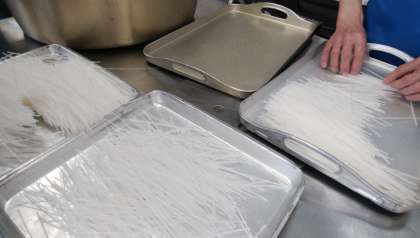*給食では、じゃがいものでんぷんで作られた「はるさめ」を使っています。