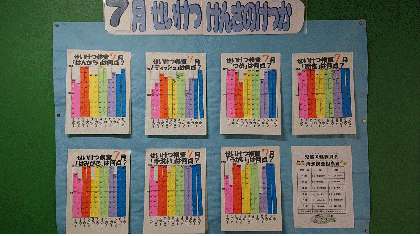 検査の結果は、クラスごとのグラフにして保健室前の廊下に掲示しています。