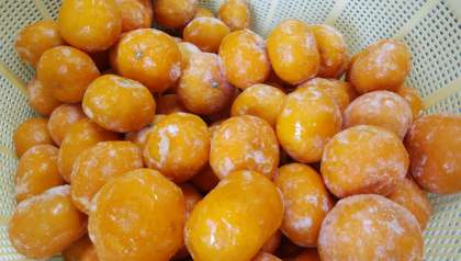 蒸し暑い今日にぴったりの冷凍みかんでした。写真は凍ったみかんですが食べる頃にはほどよく解凍されていました。