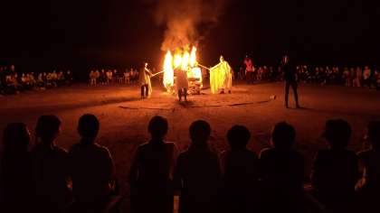 火の神が登場し、火が灯されました。 キャンプファイヤーの始まりです。