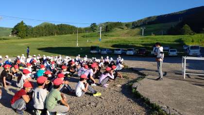 6時に起床し、30分から朝会が始まりました。 今日もとてもよい天気です。