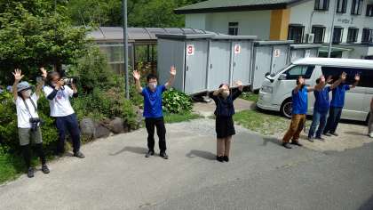 バスが出発しました。 宿舎の方々やカメラマンさんが見送ってくださりました。 本当にお世話になりました。