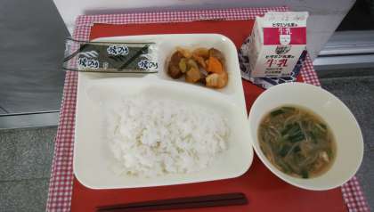 中華みそスープには、鶏肉、もやし、コーン(冷)、にら、しいたけ(乾)がはいっています。
