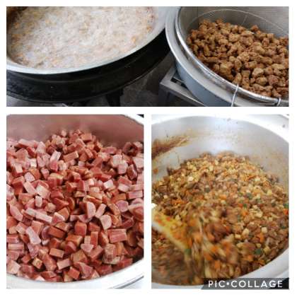 ・豚肉にしょうが汁、料理酒、こいくちしょうゆで下味をつけ、でんぷんをまぶして油であげます。