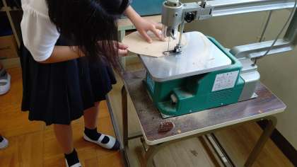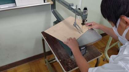 今日は、下書きの線に合わせて電動のこぎりを使って切りました。初めて使うものだったので、みんな慎重に取り組んでいました。