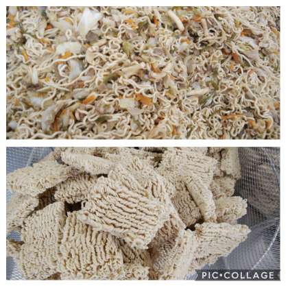 中華めんは、小麦粉に塩と「かん水」を加えてこね、めんにしたものです。かん水は、炭酸ナトリウムなどを溶かしたアルカリ性の水で、加えるとめんの色が黄色くなり弾力が増します。