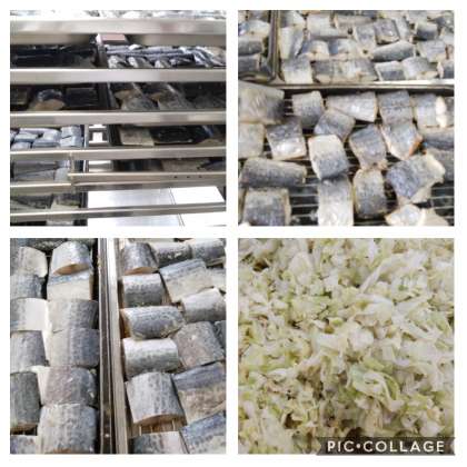 *さごしは料理酒、塩で下味をつけて焼き物機で焼いた後、振り塩をしていただきました。