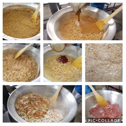 キーマとは、インドの言葉で細かいものを意味し、ひき肉を使ったカレーをキーマカレーといいます。今回はひき肉のほかに、ひきわり大豆もはいっています。小麦粉のかわりに、米粉を使ったカレールーの素で味付けしているので、小麦粉アレルギーの人も食べることができます。