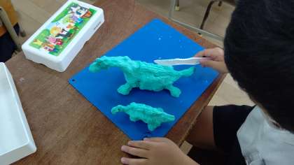 恐竜やお弁当、動物やケーキなど、思い思いの作品を夢中になって作っていました。