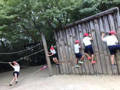 到着してすぐにフィールドアスレチックに挑戦!全部で28種類あり、難易度も様々で、とても楽しんでチャレンジしていました。