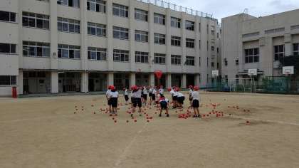 3時間目に団体競技の「玉入れ」と個人走の練習を行いました。