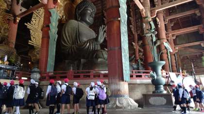社会科で学習した大仏を目の前にして、その大きさに圧倒されていました。様々な展示物や資料を熱心に眺めている子どもの姿も見られ、さすが6年生だなと感心させられました。