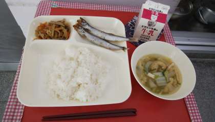 *今日の給食では、ししゃもを料理酒で下味をつけて焼き物機で焼きました。