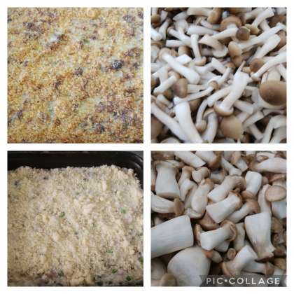 *今日の「きのこのドリア」に、エリンギとしめじがはいっています。