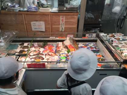 魚屋さんには5.5キログラムの鯛が売っていました。ものすごく大きくてかっこよかったです。