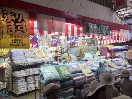 漬物屋さん、魚屋さん、布団屋さんがありました。