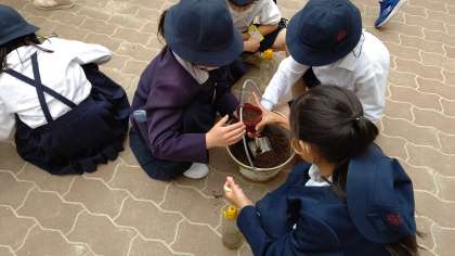 理科の学習でマリーゴールドとホウセンカの種をまきました。
