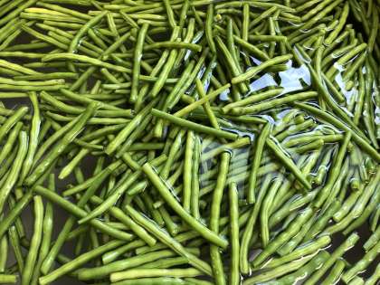 さんど豆は、さやいんげんとも言い、いんげん豆が大きくなる前にさやごと食べることのできる野菜です。1年に3度収穫することができるので『三度豆』とよばれています。1番おいしく、たくさんとれる時期は6月から9月にかけてです。