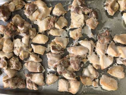 料理酒、塩で下味をつけた鶏肉を焼き物機で焼きます。
