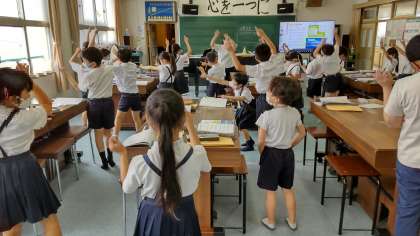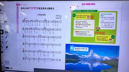3年生の音楽の授業を1時間見ました。リズム感があり、楽しくて巻き込まれるような授業でした。子どもたちも乗ってきて、身体表現あり、歌あり、器楽あり、楽典あり、鑑賞ありともりだくさんでした。