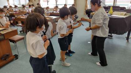 リコーダーで「ド」の音を学習しました。この音の吹き方は、かなり練習が必要です。おうちでの練習もかなり必要ですので、ぜひ聞いてあげてください。