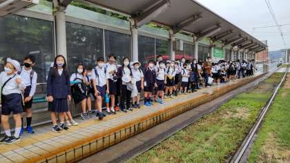 今から、広電に一時間乗って、宮島の宿舎をめざします。