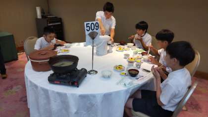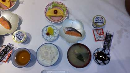 朝食です。アサリの味噌汁、鮭、オムレツ、ヨーグルトなどでした。昨晩はしっかり寝てました。朝の検温でも、発熱者はなし、喘息も全く出ませんでした。これから、荷物整理。8時15分からもみじ饅頭作りなどです。