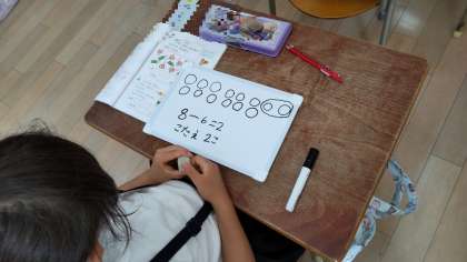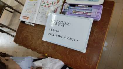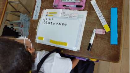 先日、校長戦略予算や2ブロック化予算を使って、「ミニホワイトボード」と「黒と赤のホワイトボードマーカー」を全児童に配布しました。夏休みにその使い方を「ちょんせいこ」さんという講師をお呼びして教職員研修会を開催するのですが、もう使ってくれているクラスがありました。
