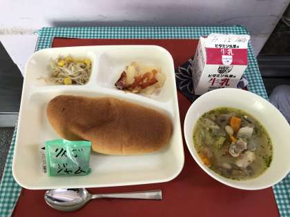 ★7月15日(金)の給食は、 ・鶏肉とてぼ豆のスープ煮
