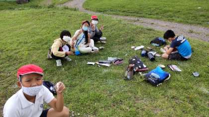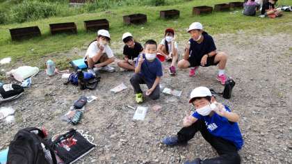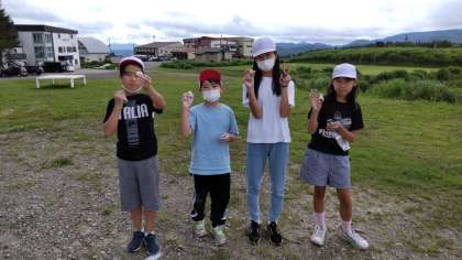 勾玉が大分完成してきました。あとは、磨いて粉を取り、光らせます。白い粉が顔についている子もいます。